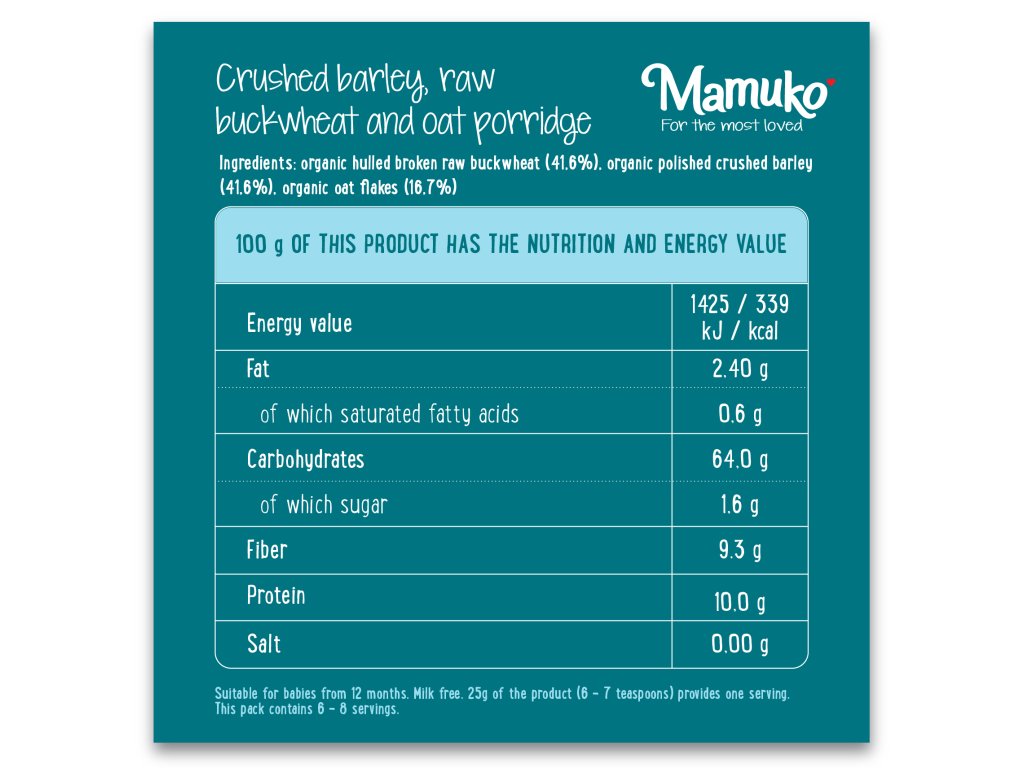 Mamuko Dětská bio kaše drcená zelená pohanka, ječmen, oves 200 g