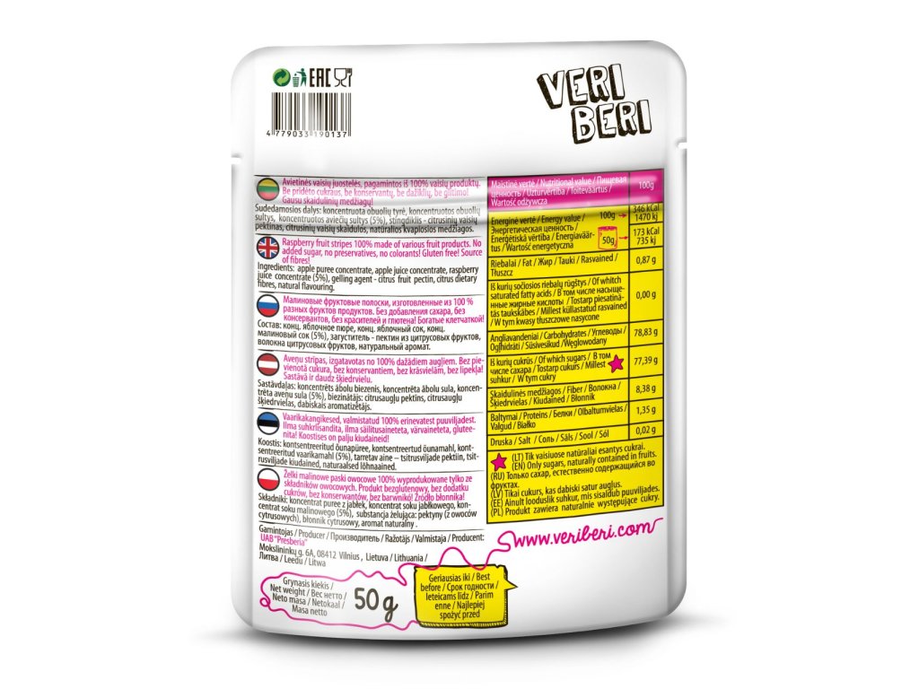 Veri Beri Ovocné stripsy Malina 50 g (28 ks)