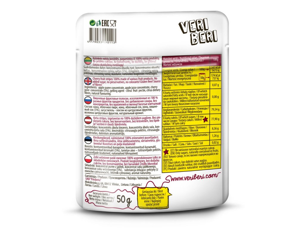 Veri Beri Ovocné stripsy Višně 50 g (28 ks)